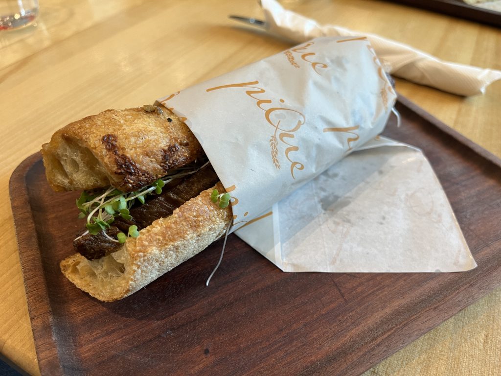 In a fit of manifestation, my wife and daughter and I hit Pique on a whim last Sunday and I made that sandwich happen. It’s a baguette, filled with thick cuts of peppercorn crusted brisket, peppercorn sauce, caramelized onions, crispy shallots, microgreens, and brie cheese (most of the ingredients at Pique are sourced locally, by the way). This sandwich was next-level, the perfect mix of ingredients. The beef was incredibly tender, the sauce and brie made it rich without being heavy, and the pepper gave it just enough kick without blowing everything up. It’s a serious sandwich.